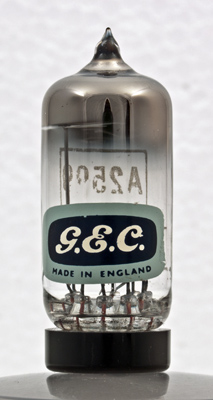 The A2599 is a low noise VHF triode for grounded cathode operation. The design is of the frame grid type with cathode one side and anode on the other. This planar construction and the multiple cathode connections place the assembly part way to disc seal construction but at considerably less cost.