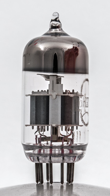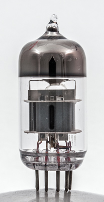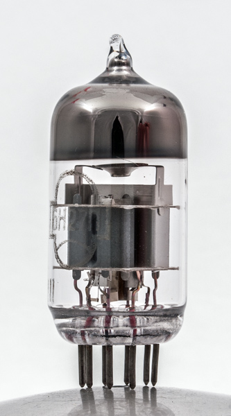 This exhibit is a Russian version of the ECC86 double triode. The latter is very special high frequency double triode. At a time when AF power transistors were replacing valves but no VHF transistors were available the ECC86 was designed to operate directly from vehicle battery supplies for car radio applications alongside transistors.