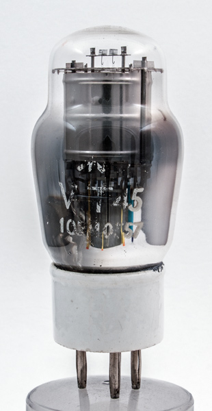 The VT45 is a battery RF triode with a 3.5 Watt anode dissipation and a working frequency up to 20 MHz. The prototype was the M-OV X56. The later CV code was CV1045.