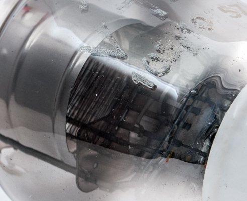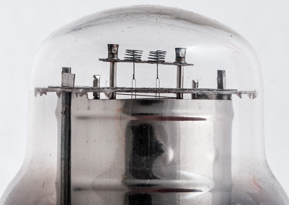 Inside the bright anode the four vertical filament strands can be seen.