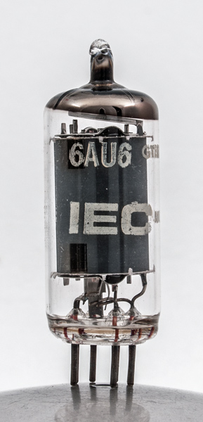 The 6AU6 is a sharp cut-off RF pentode for use up to 50 MHz. Also this valve can be used at audio or as a limiter or sync. separator.