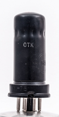 The metal envelope has been pinched in at the top, presumably to hold the internal structure rigid. The letters are OTK.