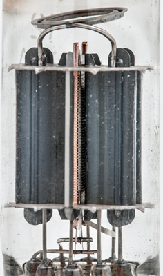 One source of distortion from a valve amplifier comes about from the variation in inter-electrode distances in conventional valve design. Planar construction has a flat cathode with the grid passing flat across it and the anode as a flat plate parallel with the grid and cathode. For disc seal valves this construction places the grid across the width of the valve and the grid connection is at that plane. SeeLighthouse Valves for details. As this valve is not designed for UHF frequencies, or above, the construction is a double sided planar construction.