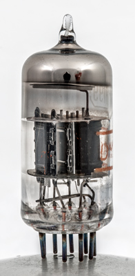 The pentode on the left and the triode on the right have shapes and sizes comparable with the ECF82.