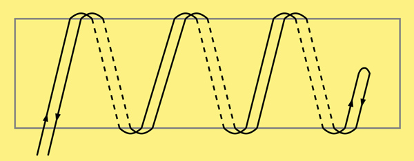 The sections are separated by an electrostatic screen. The interesting point is the heater at the base of the triode. This is formed as a bifilar pair of twisted wires in the same way as the Mullard's EF86 to reduce the external magnetic field and reduce hum. The ECF82, as a VHF mixer has no such hum reducing adaptation.