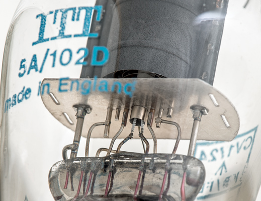 The CV1724 is an audio output pentode for telephone repeater amplifiers. The prototype was the 5A/102D and both designations are printed on the glass. The old GPO code is POVT183.