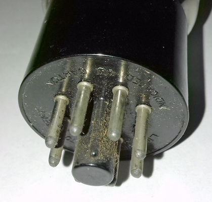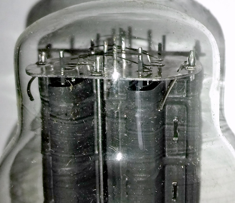 The two joined triode sections. The top of the grid can be seen in the tops of the triodes.