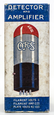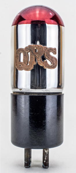 This Red Top from QRS Music is described as an amplifier and detector.The following is from UV201.com:The QRS Music Company produces and markets mechanical music items, and are best known for player pianos and rolls. The company is still very much alive and concentrating on their traditional market, but for a brief time in the 1920's, they also sold a line of radio tubes.The QRS tubes were distinctive, to say the least. They were dipped in a clear red lacquer and, appropriately, called Red top tubes. Naturally, this had no effect on their operation, but they look great when they are lit. In the early days of radio, when this technology still had a magic quality about it, appearance was as important as actual performance. The exotic appearance of the QRS tubes, with two red lights burning in each one, must have been very impressive to the gullible customer.The two parallel triodes are not visible from the side. All their valves had the same construction and it is possible that they were selected for application on test.