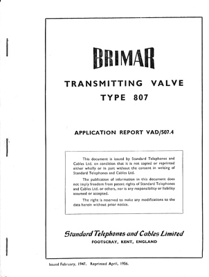 Brimar Transmitting Valve Type 807. Application Report
