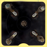 This large square four pin base originated in the UK in about 1925. It was originally used on medium power transmitting valves for the UK military. Later use was on the audio valves such as the DA100.