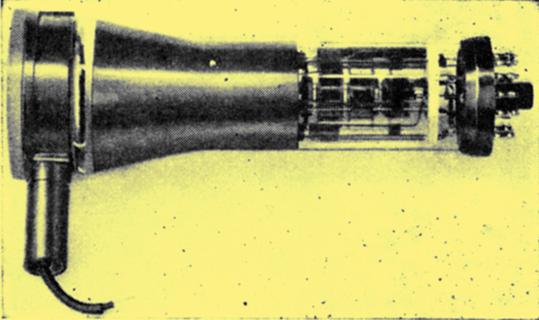 Ultrasonic image converter tube. The structure at the face end (left) contains the electrostatic screen surrounding the collector electrode.