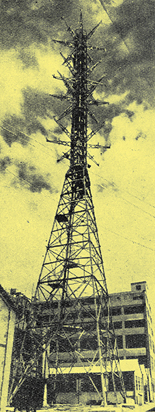 The television mast erected at the Hayes works of HMV for experimental work in television development.